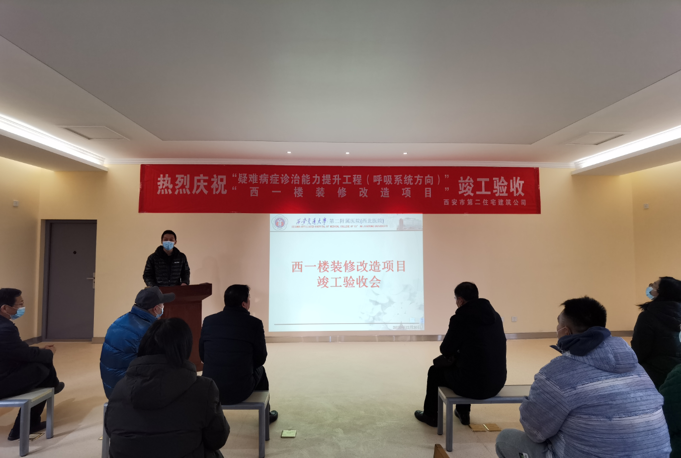 2月2日上午,西安交通大學(xué)第二附屬醫(yī)院負(fù)責(zé)人代表院方來我公司慰問座談,以感謝我公司提前保質(zhì)保量完成交大二附院西一樓維修改造項目。