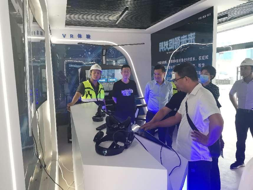 考察團一行在施工現(xiàn)場聽取了項目負責(zé)人對平疫結(jié)合項目的建設(shè)概況、設(shè)計理念、高穿插作業(yè)方案以及項目實際進度的介紹后,一同參觀了項目數(shù)字化管理展廳,實操VR體驗、AR體驗、風(fēng)控電子沙盤等內(nèi)容,對港務(wù)中路保障性租賃住房的創(chuàng)新模式表示肯定,對數(shù)字化管理展廳的節(jié)點性施工技術(shù)交底提出贊揚。