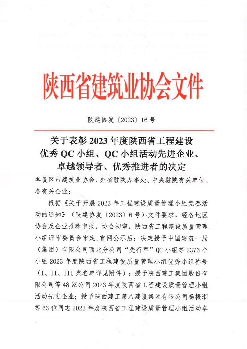 近期,在陜西省建筑業(yè)協(xié)會(huì)2023年QC成果評(píng)審中,港務(wù)中路項(xiàng)目QC小組《切割機(jī)擋火、降塵、水過(guò)濾系統(tǒng)的研制與應(yīng)用》榮獲二類(lèi)成果獎(jiǎng)。今后我們將繼續(xù)努力,再接再厲,爭(zhēng)取拿到更多成果獎(jiǎng)項(xiàng),為提升工程質(zhì)量貢獻(xiàn)一份住總力量。